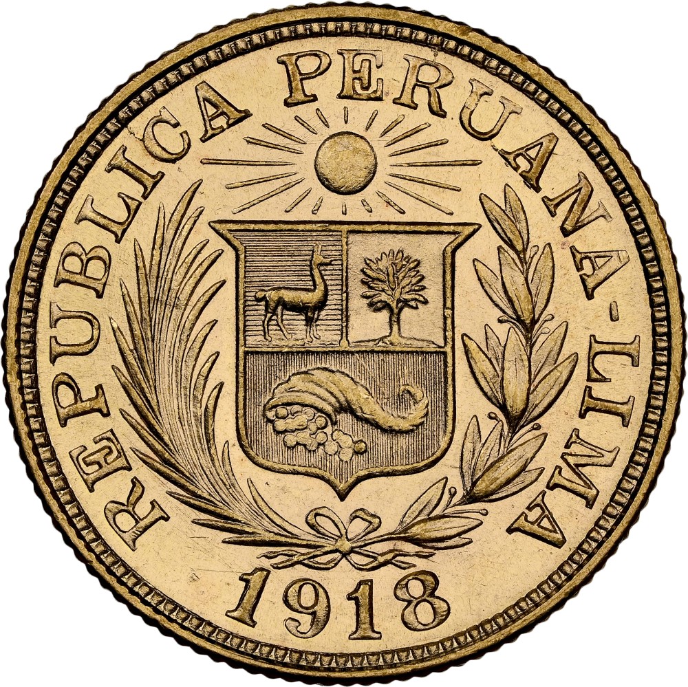 Златната монета 1 либра Перу 1918 г. е емблематичен представител на перуанската парична система от началото на XX век, вдъхновена от британската златна лира.