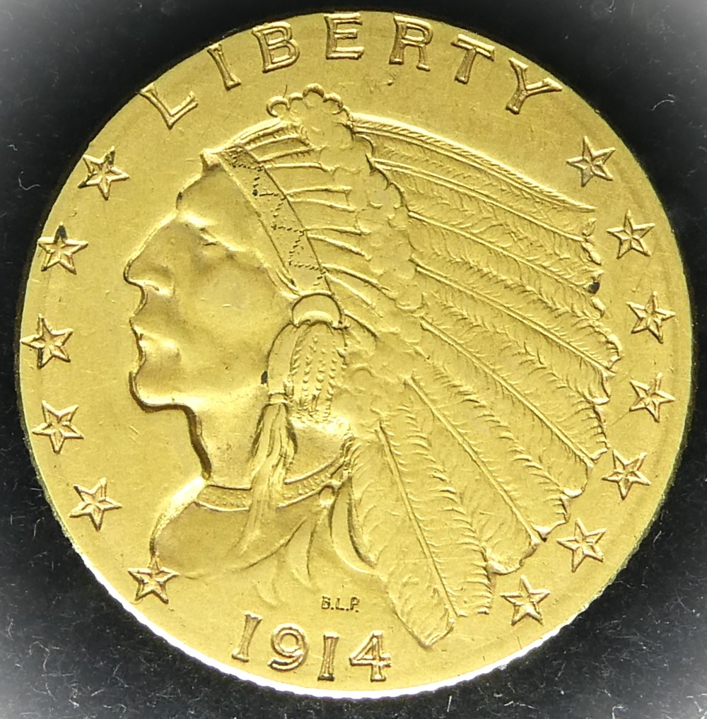 2 1/2 Dollars Gold Coin 1914-D (Quarter Eagle – Indian Head) е класическа американска златна монета с висока колекционерска и инвестиционна стойност.
