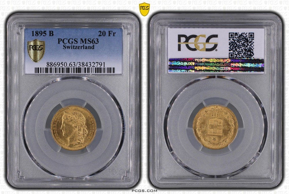 - 20 Франка 1895 MS 63 PCGS Хелветика