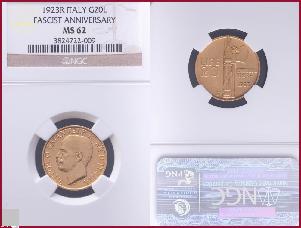 - 20 Лири 1923R MS 62 NGC Италия Fascetto