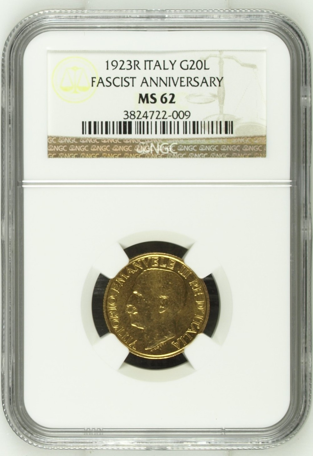 - 20 Lire 1923R MS 62 NGC Italy Fascetto