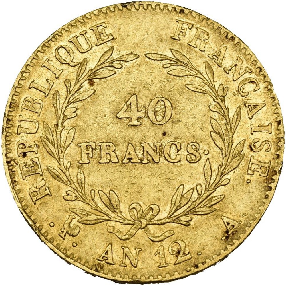 In the center – the denomination 40 FRANCS, below it – AN 12,